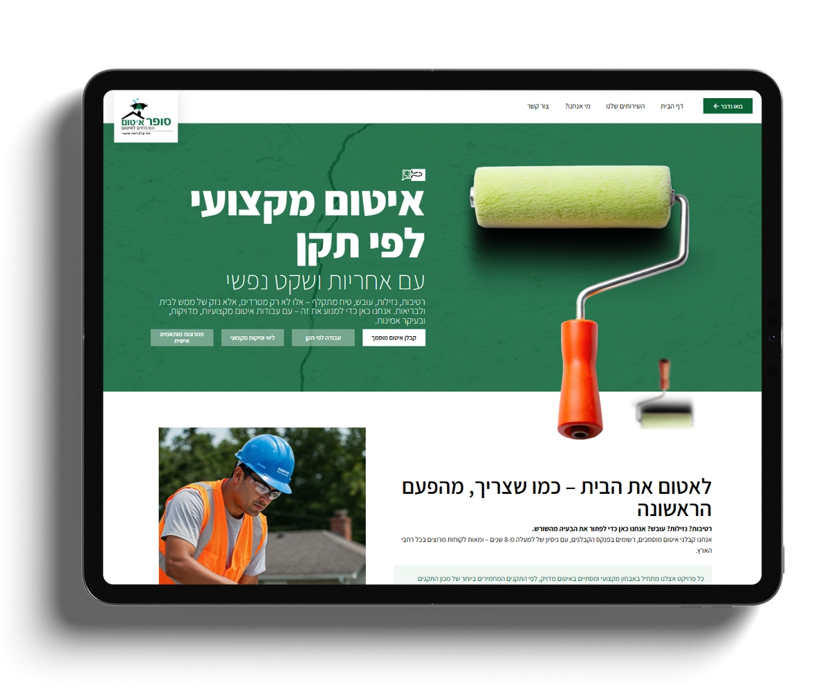 אני בונה אתרים עם עיצוב רספונסיבי שמותאם לסמארטפונים – כולל כפתורי יצירת קשר בולטים, תפריטים פשוטים וטעינה מהירה במיוחד.